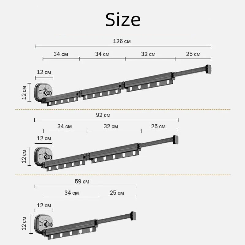 A: It refers to the number of extending arms. One-fold reaches 59cm, two-fold extends to 92cm, and three-fold opens fully to 126cm. More folds = more drying space.